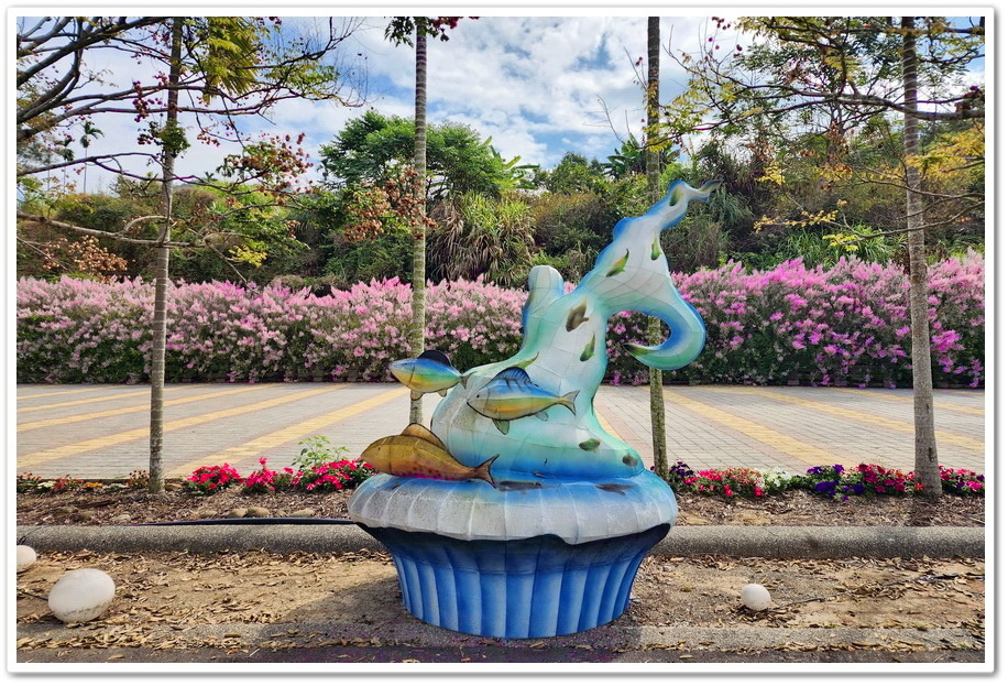 上圖這一處『麝香木』的廣場比較小,不過這裡有一個大愛心生態池,只是生態池乾涸沒有水,不然將會是更漂亮!