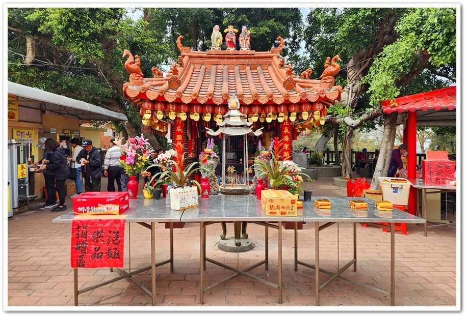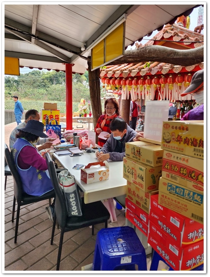 這裡是捐贈泡麵的地方,一箱250元,只要拿250元現金給廟方,廟方登記後,即可代為購買一箱泡麵,供來往香客食用。或是向廟方購買泡麵一箱,於祭拜土地公後,即可供大眾享用,吃泡麵補財庫,捐泡麵享福氣,點燈祈福升官發大財,同享土地伯公的厚愛