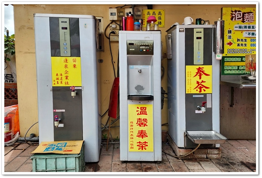 然後廟旁就是泡麵的地方,有信眾捐獻的三台飲水機,都是100度C的熱水,泡麵時要小心使用,以免被滾燙的熱水給燙傷
