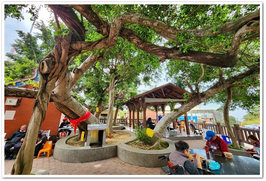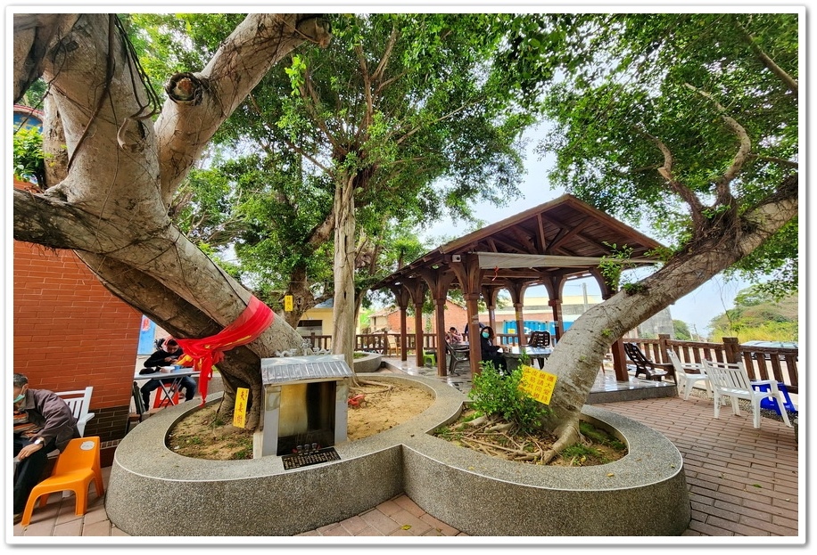 『福榕宮』經常有人專程來參拜、吃泡麵,只見大家人手一碗,坐在大榕樹下享用,希望能沾沾土地公福氣,家庭和樂、課業與事業順利