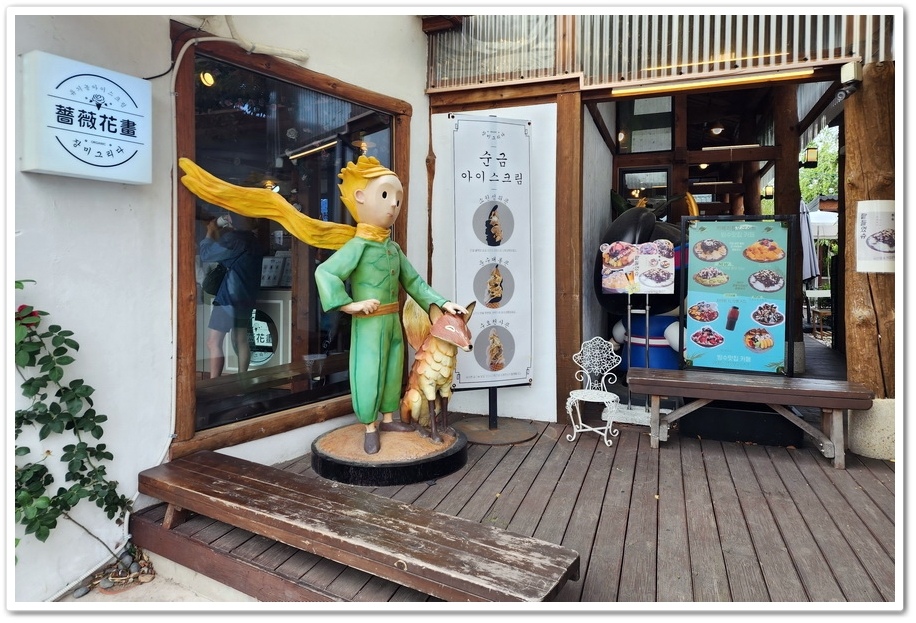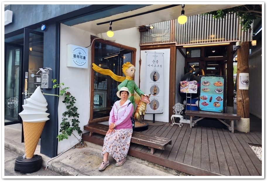 ▲ 這家薔薇花畫(장미그리다)是賣冰淇淋的店家,我們在這裡拍到了『甘川洞文化村』裡著名的『小王子與小狐狸』。所謂吃甜點是另一個胃,這家店是使用有機農牛奶製作的冰淇淋吧!此外!『皇理團路』裡也有幾家韓屋民宿,如果有預定的話,這時候可以先去辦理入住