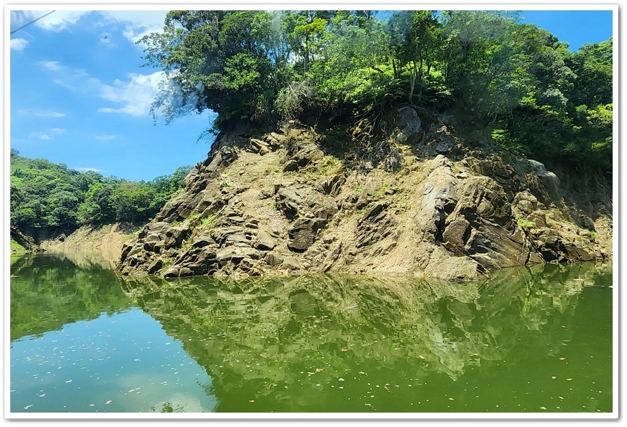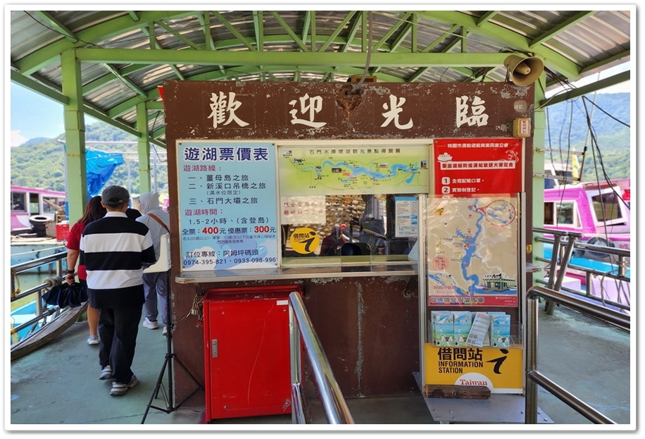 以上行程除了『大溪老街』有去過之外,其它景點都沒去過,因此雖然團費價格昂貴,也給它報名走一趟。首先行程第一站就是桃園『石門水庫』裡面的『阿姆坪─薑母島』搭船遊湖,據說有機會可以登上『薑母島』參觀,因為如果『石門水庫』水位持續上漲的話,船隻就能靠岸登島
