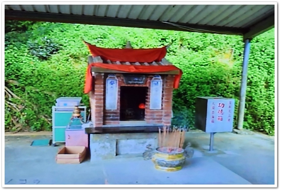 ▲ 薑母島上百年土地公。事發在1869年中元普渡,『呂阿姆』和一些墾民返回家鄉祭祀,只留下14人留守工寮。這14人白天前往大溪採買伙食,當晚回程路經慈湖後山,全數遭到泰雅族人出草殺害,首級皆被取走,墾地也被奪回。後來地方人士籌資建墓,立碑合祀,並稱之為『十四命公』