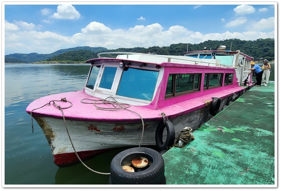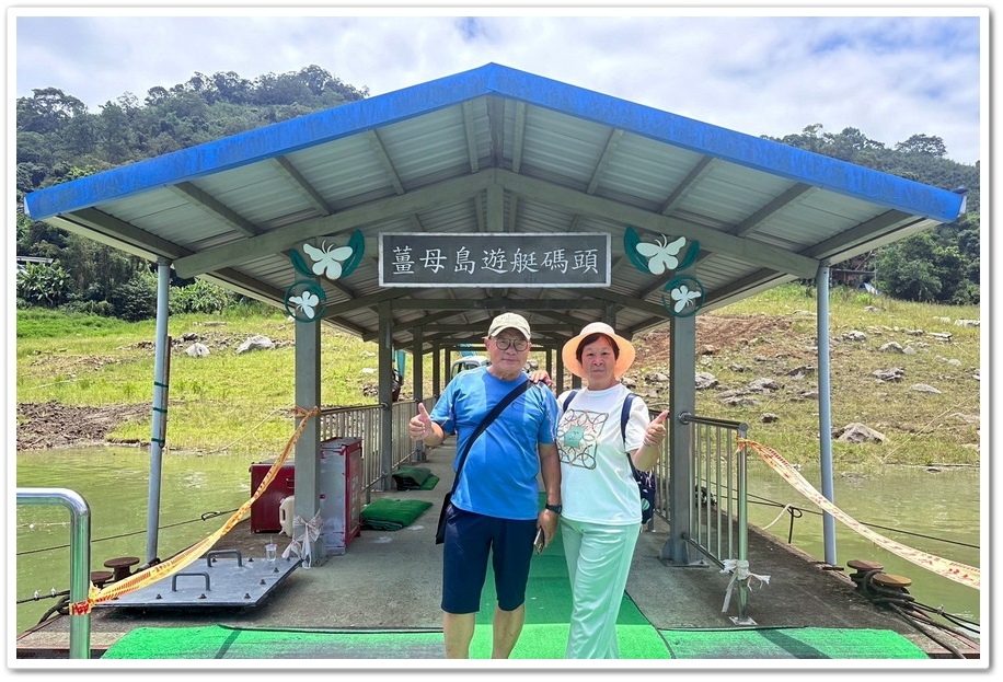 而我們今天則是要來搭船遊湖,順便登上『薑母島』參觀,據說『薑母島』是紅極一時台灣的偶像劇,由陳喬恩、阮經天主演的《命中注定我愛你》拍攝場地,『薑母島』原名『枕頭山』,因偶像劇杜撰此名,而稱為『薑母島』