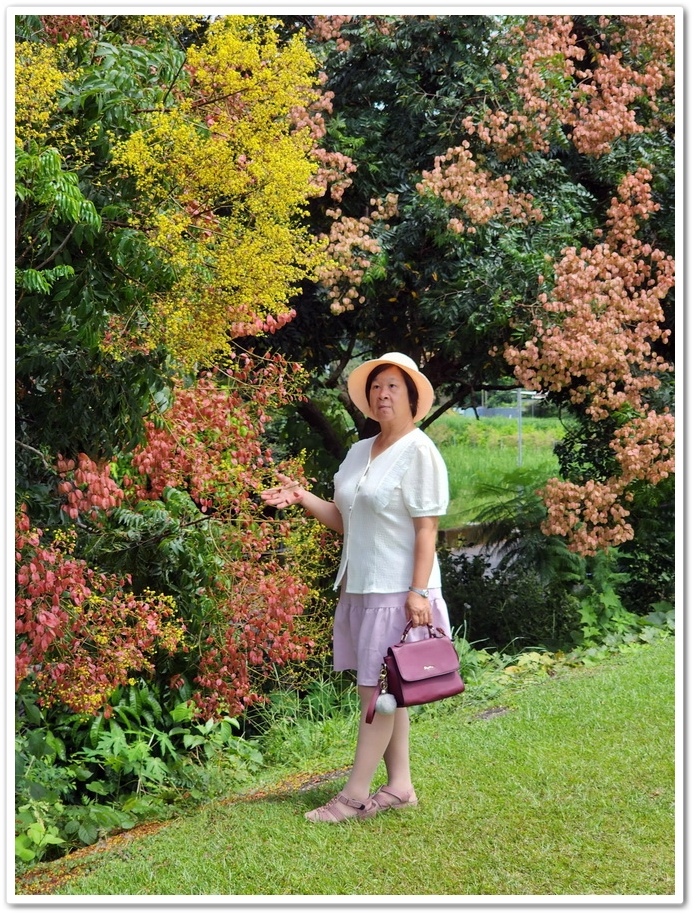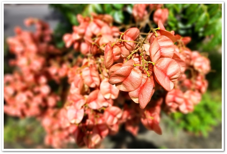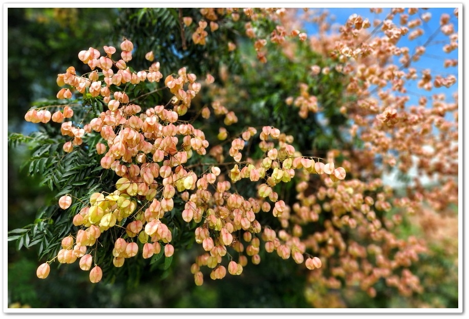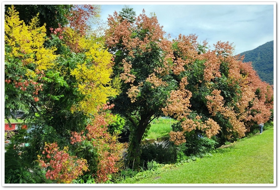 台灣欒樹開花時呈現黃色,結果時轉為紅色,到了果實成熟時轉為褐色,葉子則是綠色,因此也被稱成『四色樹』,有網友拍攝美圖當天是2024年9月14日,僅一棵結成紅色果實,其餘皆為黃花,是取景黃中帶紅漸層美照的絕佳時機,但隔一個禮拜,我們來拍照時已經全部變成紅色了!