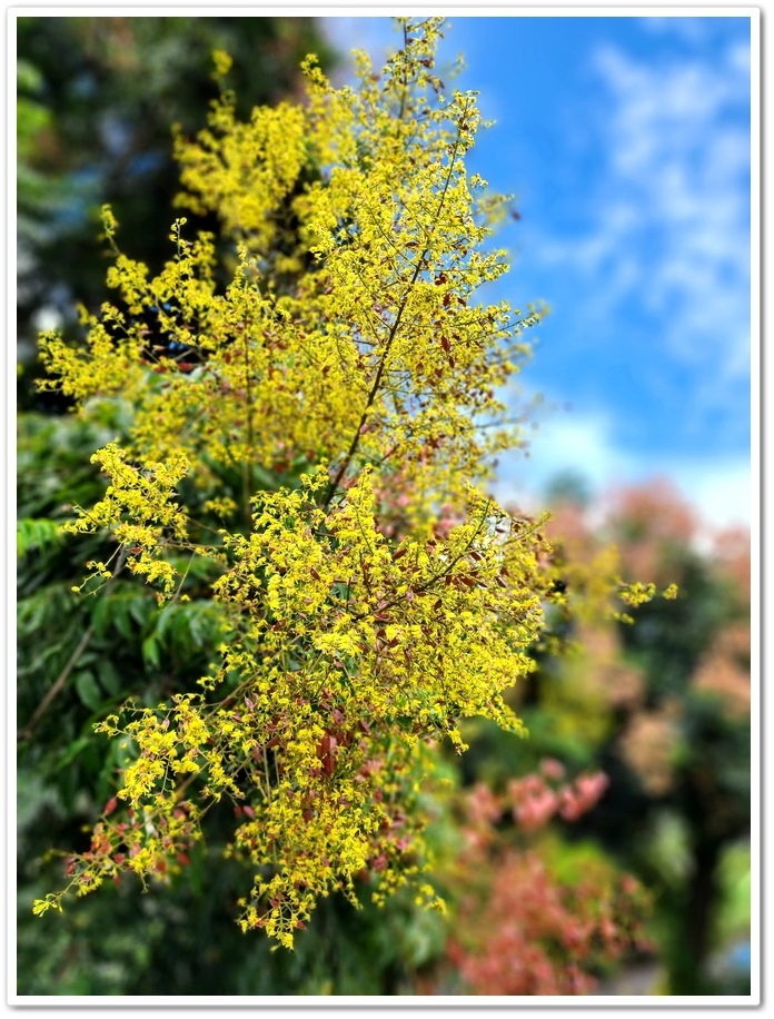 九月秋起了!氣溫從酷熱慢慢進入微涼;這是一個值得盼望的季節,如詩如畫的金秋耀眼綻放,很是美麗。一片金黃的台灣欒樹盛開,構成一條壯觀的金黃大道,非常漂亮迷人,可悠閒漫步欣賞漸層系美景,十分浪漫!