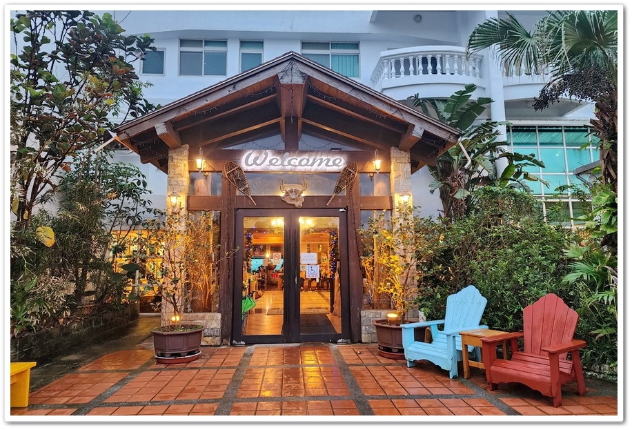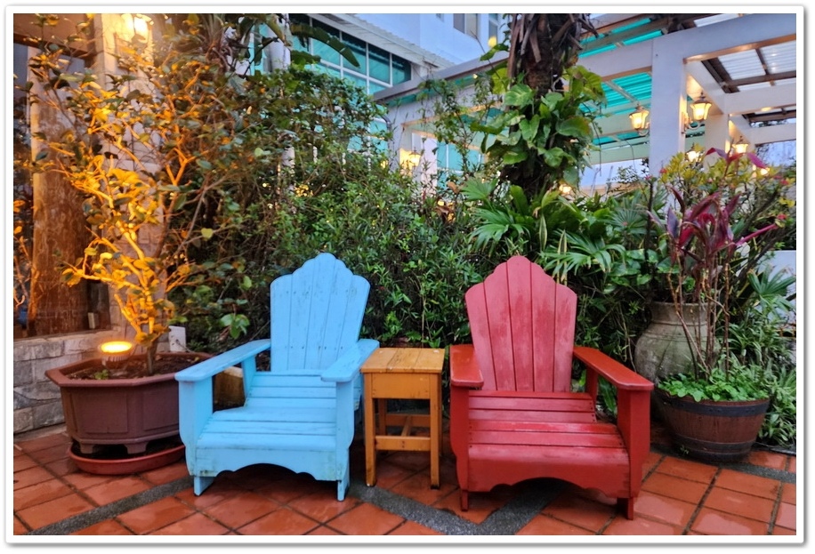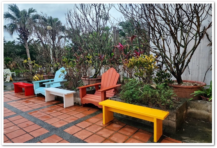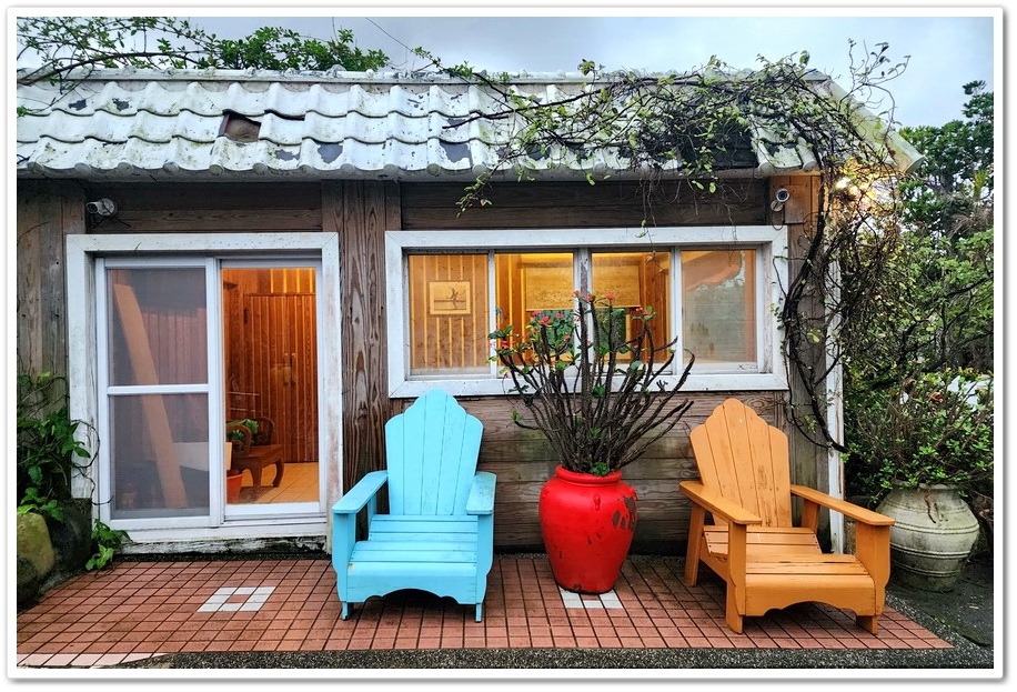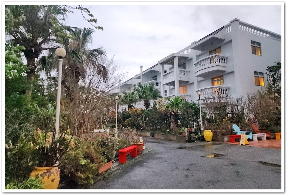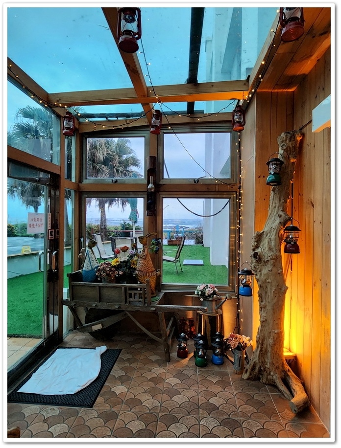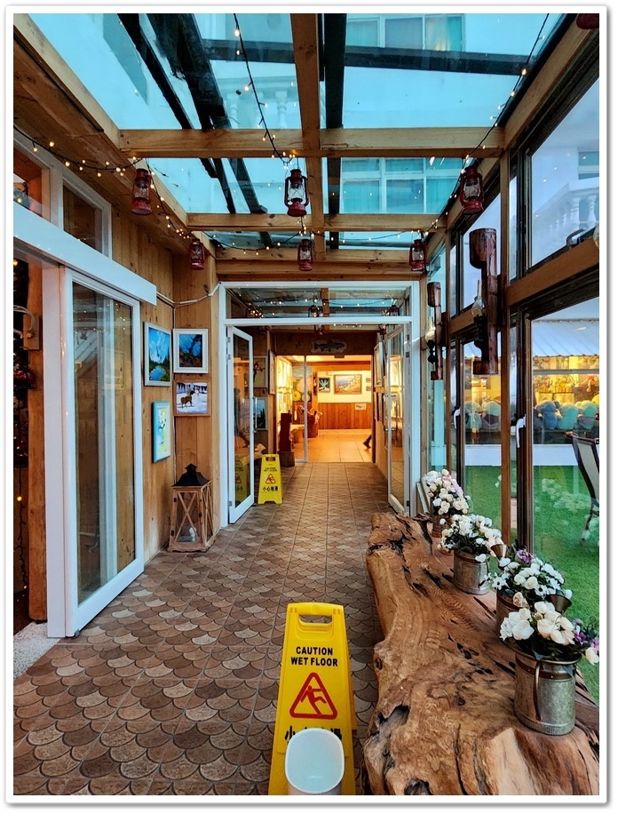 ▲ 這裡則是接待大廳與室外的轉角處,由左邊玻璃門可以到戶外看海,另一邊則是進入會館住宿區,在走道上每一處空間,都盡量擺滿了各種裝飾,簡直是讓我們拍不完,所以先拍了室內擺設,明天早餐後天氣晴朗時,再來拍拍室外的風景