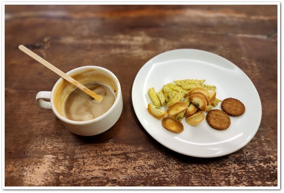 ▲ 接著我們把行李安頓好之後,還沒到晚餐時間,大家群聚在接待大廳裡喝咖非吃美食,大廳空間於下午入住提供咖啡、餅乾的免費下午茶,給予賓至如歸的感受!下午茶咖啡是自助式研磨機(好喝)無限暢飲,晚上還有點心(紫米紅豆與石花凍),好吃又美味!