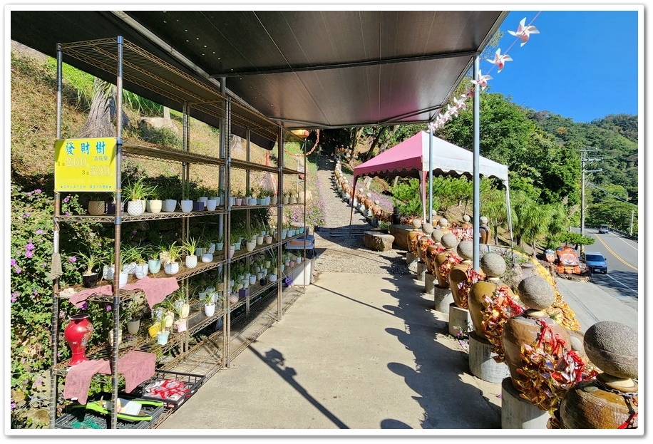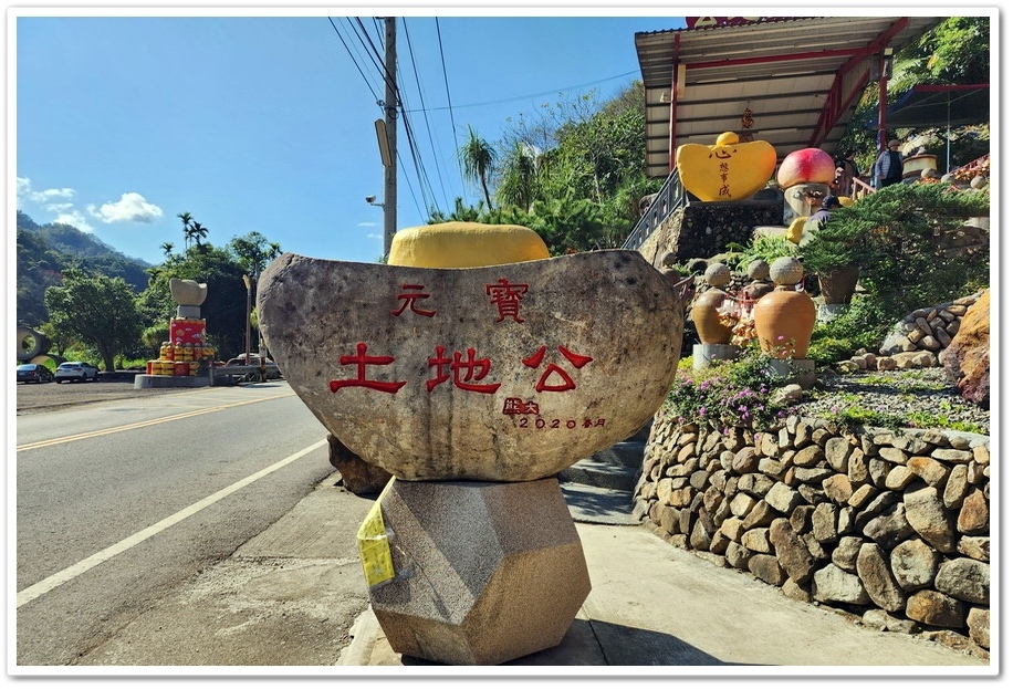 續上篇!當我們在南投國姓『九尖茶廠』拍完梅花與雲海之後,回程不敢再走『139縣道』的來時路,改走『147號縣道』接國道6號『水沙連高速公路』回家,於是在回程時經過『九份二山國家地震紀念地』之後,遇見了很多網友已介紹過的『元寶土地公』,原來『元寶土地公』就是在這裡,隨即我們也停車拜拜拍照!
