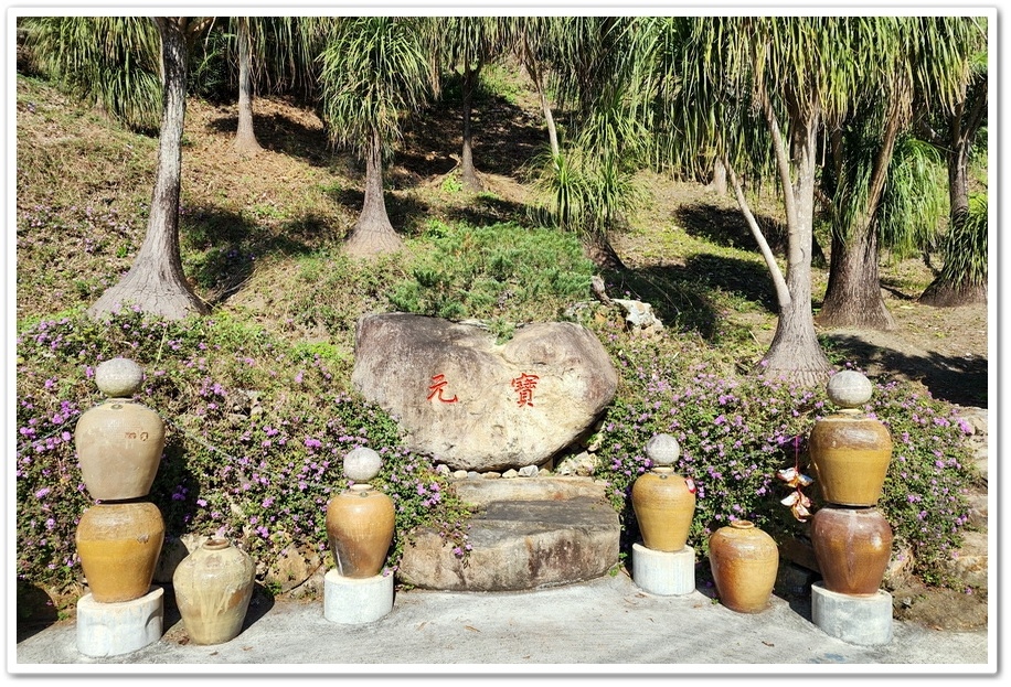 『元寶土地公廟』近觀遠眺盡是元寶,圓石矗立,可以撥轉,象徵石來運轉。石雕天道酬勤,心誠則靈,敬天謝神,教化子民。拾階而上曲境通幽,石階左右盡是章法,神龕、供桌,石壁桌椅盡是玄機,『元寶土地公廟』於2020年8月16日入火安座