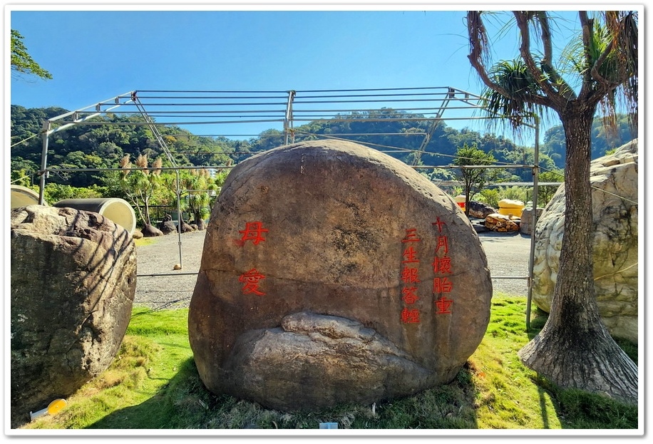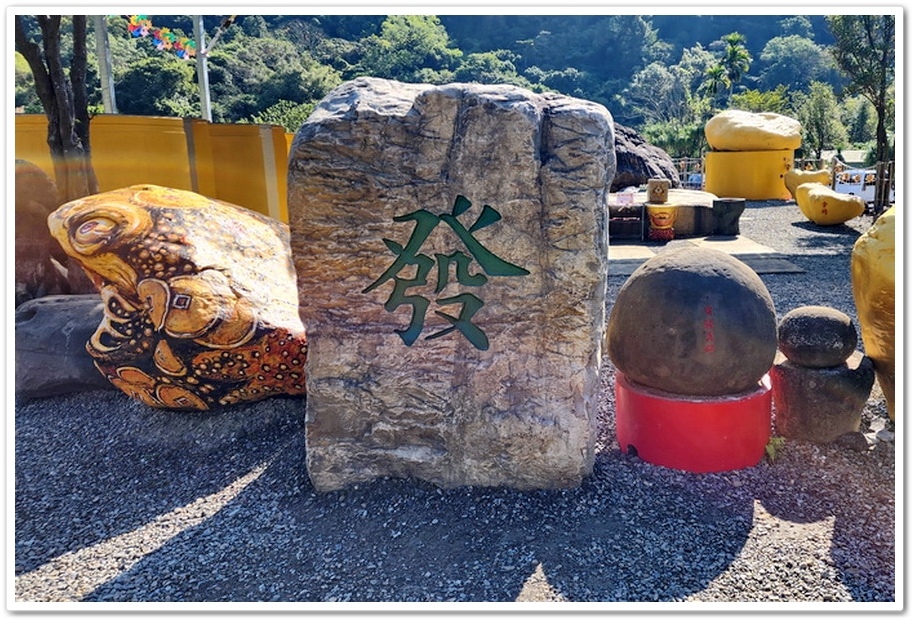 ▲ 108顆圓石。『元寶土地公廟』除以各種奇石營造,還布置108顆可轉動且寫有祝福的石球,讓香客轉動石球享好運,廟內也有多個數百公斤的巨石,將中心鑿空裝設軸承,能夠輕易轉動,取名『石來運轉』,讓參拜民眾十分好奇,也吸引路過遊客來一探究竟,成為地方新興景點!