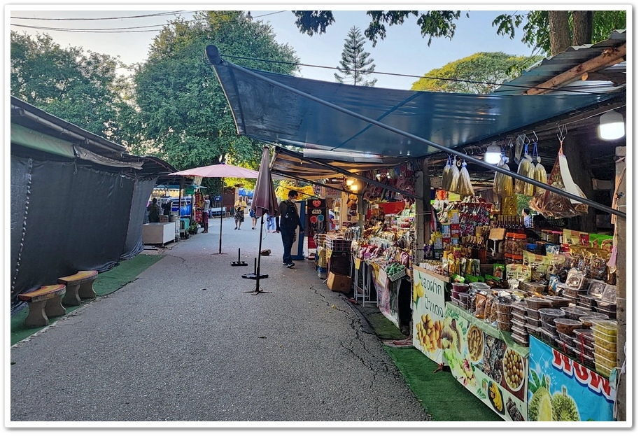 ▲ 在這裡見到最多的攤販就是水果攤啦!柚子、椰子、芒果、果乾,以及冰涼的水果汁均有在賣,還有泰國的服飾也有賣,而且泰國服飾都很便宜,一套女性洋裝約在200~390元泰銖之間,買來穿著拍照,就像是去韓國穿韓服、去日本穿和服、去越南穿奧黛一樣,充份體驗當地國服的氛圍!