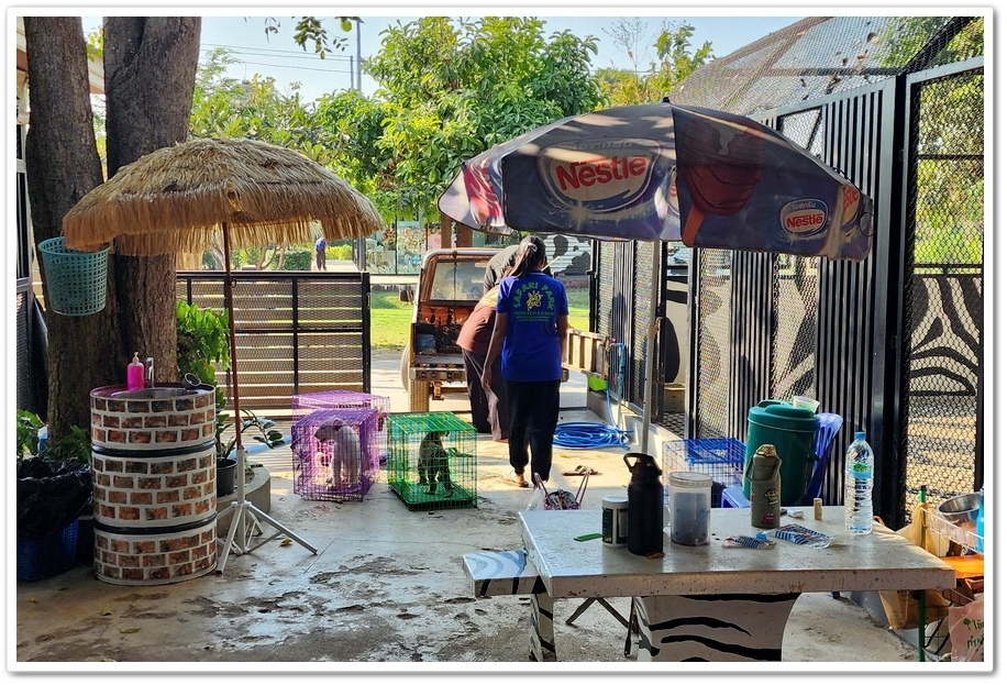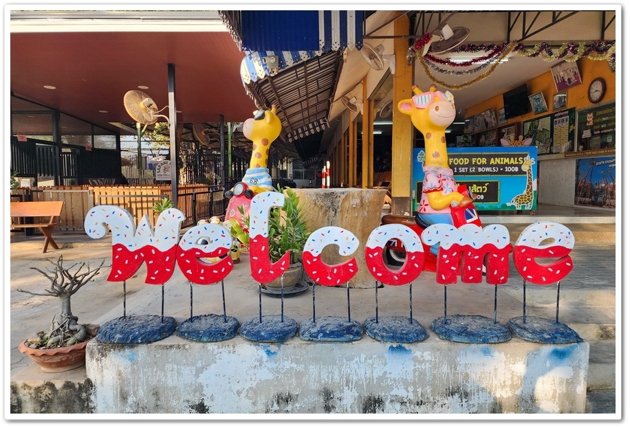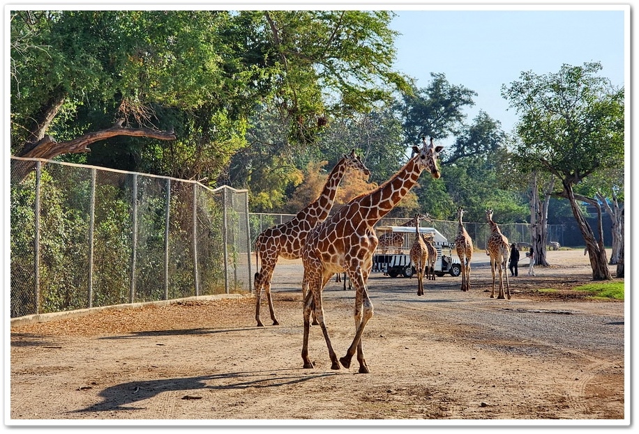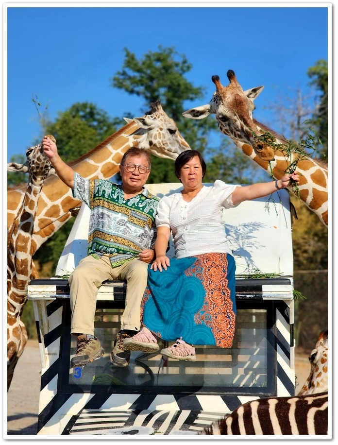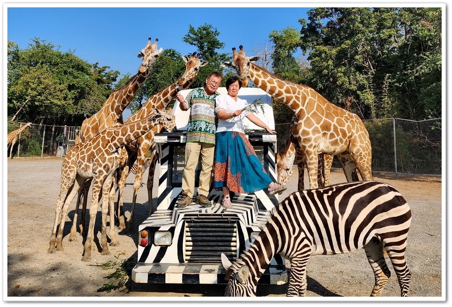 所以今天早上是旅遊『泰國』最具有驚嘆號的一天,因為今天早上我們要來參觀『北碧府野生動物園』,同時也是目前泰國最有人氣,最多人詢問的野生動物園!而今日本團包含我們兩個人在內的5個人,參加了『斑馬紋吉普車』專屬VIP網紅行程,每人1千元與長頸鹿近距離拍照,之後才再跟團搭乘遊園車進入動物園拍照!