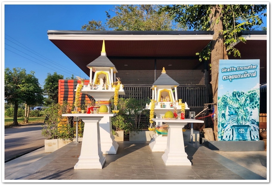 ▲ 北碧府野生動物園區的『四面佛』,園區內有許多的野生動物,您可買好飼料、搭乘遊園車,進入草食動物區餵食各種可愛的動物,長頸鹿也會伸頭進來車內跟您討食吃,這種新奇體驗將讓您留下美好的回憶。此外,園區還有各種與動物互動的自費活動項目,例如:餵食白老虎、餵小老虎或花豹喝奶、溜大貓…等等!