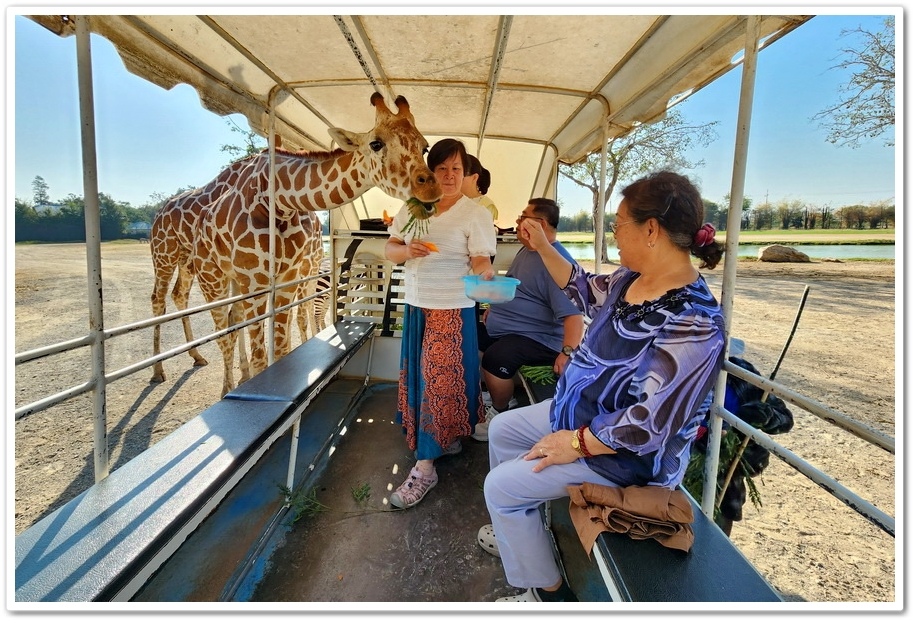 但就算沒有預約到『在吉普車上與長頸鹿合照』的活動,動物園還是有許多有趣好玩又刺激的地方。因為你還是可以坐上動物園的遊園車,打開窗戶就能真實地近距離餵食動物,當你觸摸到長頸鹿肌膚的瞬間,那種難以言喻的奇妙感,實在是超級好玩,全程絕對是毫無冷場!