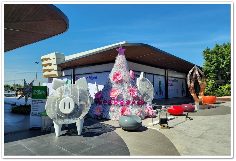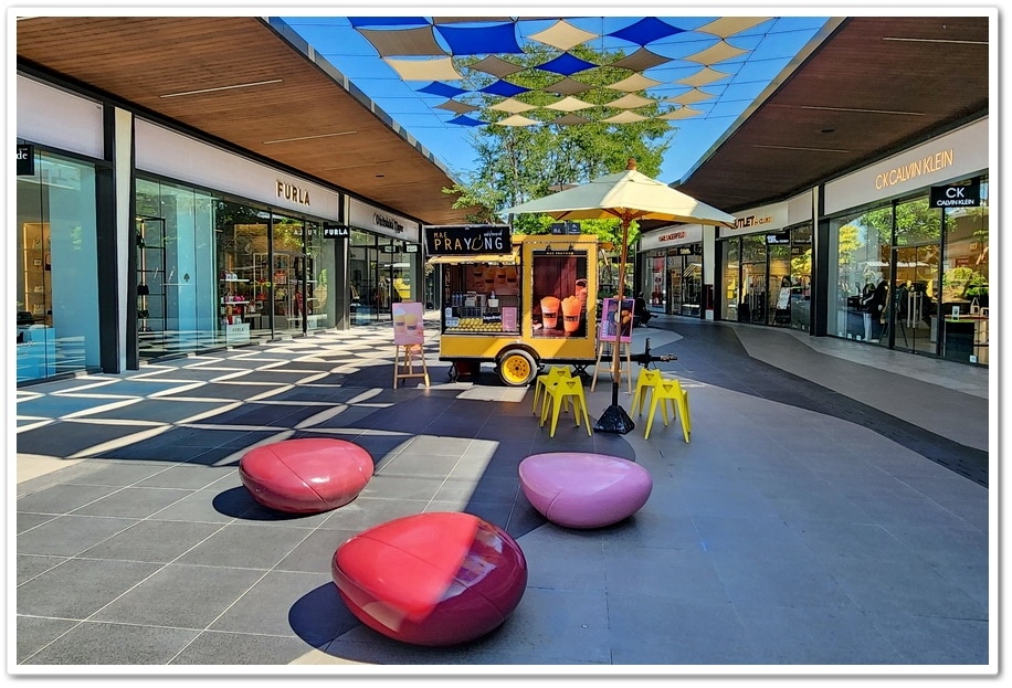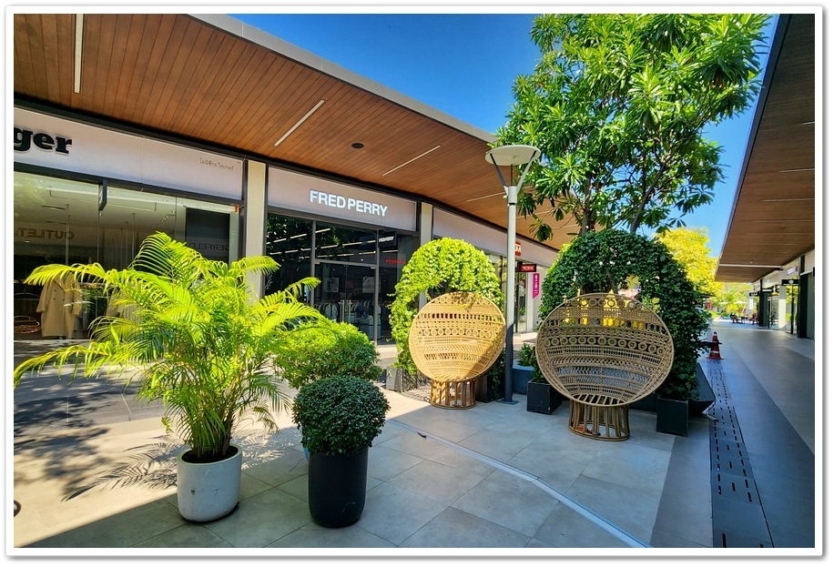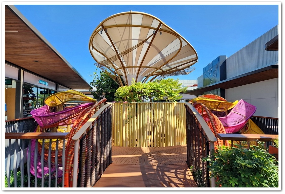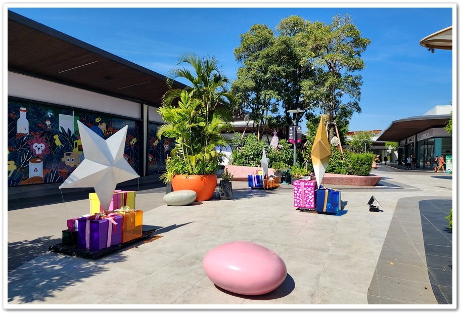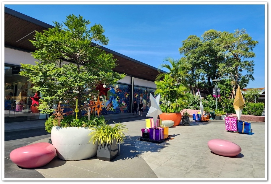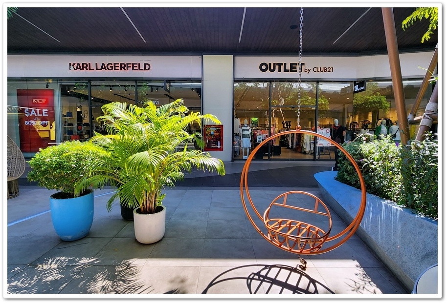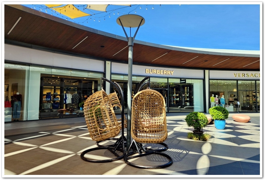 賣場最特別之處,是公共空間擺放了多位泰國藝術家的大型藝術裝置,走沒幾步就能看見繽紛色彩的藝術家作品,彷彿來到了美術藝廊,而不是Outlets呀!『Siam Premium Outlets』的占地比『Central Village』更大,但比起逛品牌,我更喜歡在外面拍照!這裡的設計真的很美很自然系!商場為了怕大家太累,『Outlets』在各處都有設置椅子能夠歇歇腳!