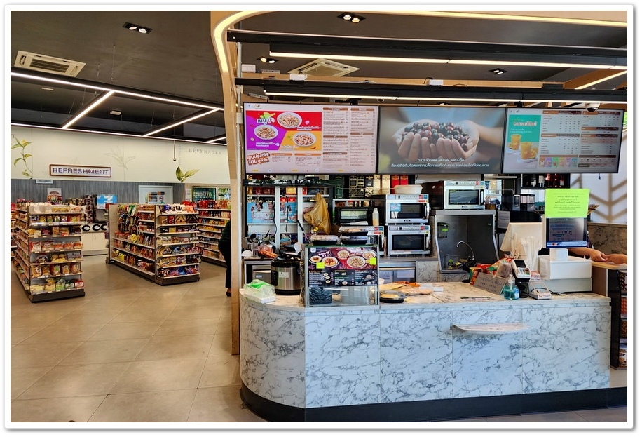 ▲ 早上11點遊覽車到達曼谷『Siam Premium Outlets Bangkok 商場』,很多團員在此把它花光、買光、促進泰國觀光!而我們只是來這裡吃超商便當,因為旅行社為了方便我們逛街,所以午餐就自行自理,因我們並不知道這裡有美食街,所以就在便利超商吃便當最方便,並把身上僅剩的27元泰銖零錢,轉換成一包巧克力餅乾當伴手禮帶回台灣!