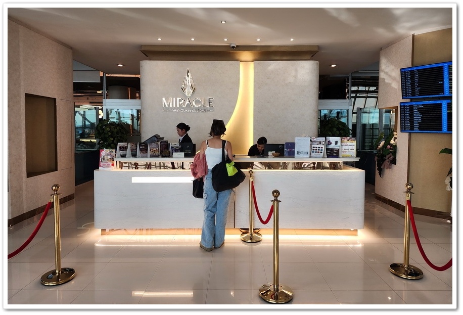 ▲ 這裡是『Miracle First Class Lounge 頭等艙休息室』。據說進去頭等艙休息室不用花大錢,只要有JCB卡就能使用『Miracle First Class Lounge 頭等艙休息室』,當我想要進去時,還被櫃檯小姊姊擋住,因為我用的是『MasterCard 萬事達卡』,不是『JCB日財卡』,害我小小心靈很受傷!