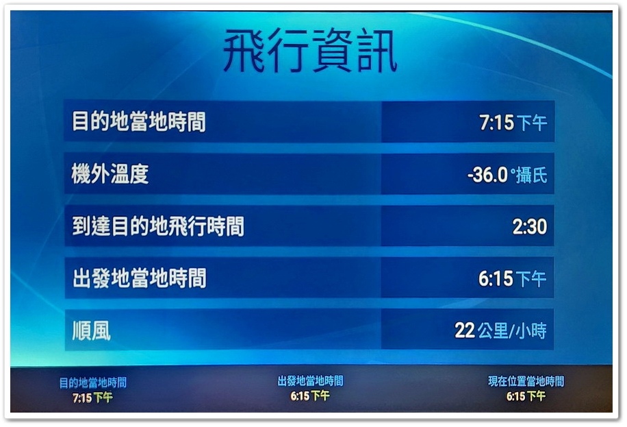 ▲ 現在機外溫度為攝氏-36度,要是人在外面不就是凍成冰塊?順風22公里/小時,速度927公里/小時,還有2個半小時才會到達『桃園國際機場』,台灣到曼谷總共要飛行4個小時