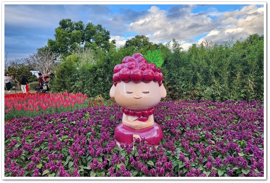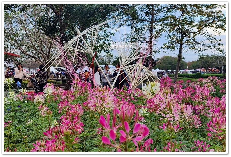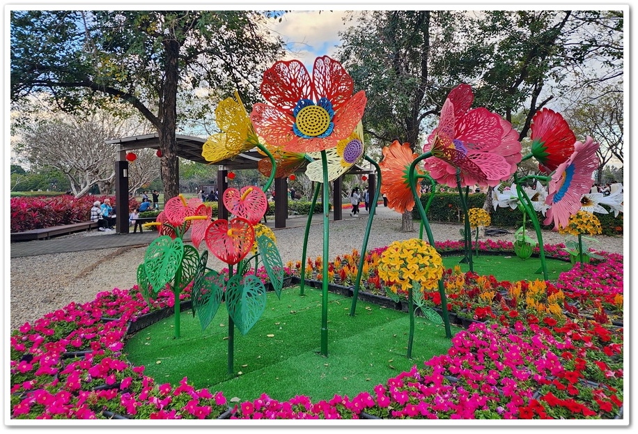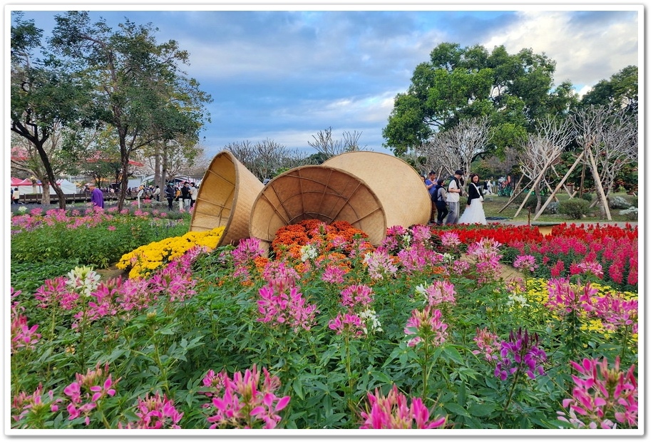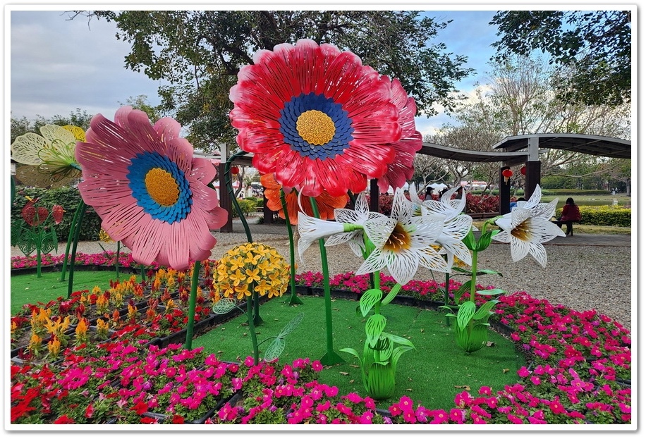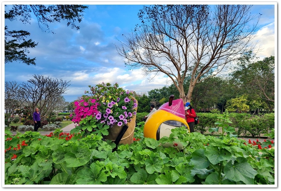 續上篇!當我們在台中大甲『鐵砧山風景特定區』參觀了雕塑公園後,接著到大甲『鎮瀾宮』地下一樓參觀『媽祖文化館』,之後在大甲街上自理午餐,但在大甲街上沒什麼好吃的,連『脆皮肉圓』跟『芋圓』都超難吃的,然後下午回到彰化『溪洲公園』賞花,雖然『溪洲公園』來過無數次,但在春節期間來賞花湊熱鬧也好!