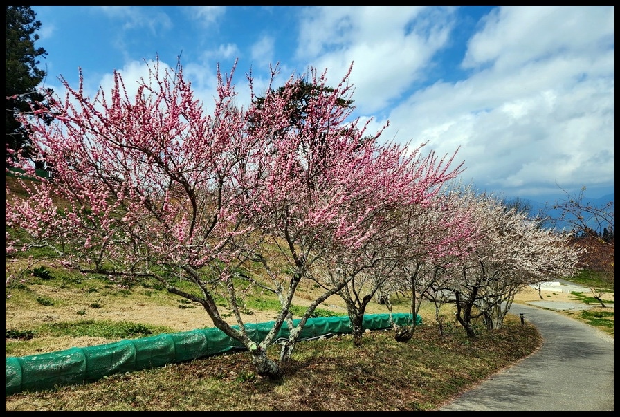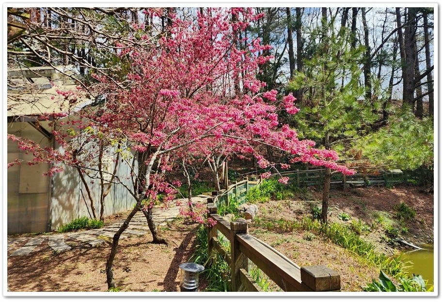 『福壽山農場』從四方前來,都需山徑曲折繞行,更越梨山,才能一睹櫻花盛綻,隨風不飄遠,就地落下花片,是穿著東洋和服撐傘,生怕被花瓣沾惹,或是即將步入生好合,都是順著春寒,花間共伴,不在意摩肩擦踵!
