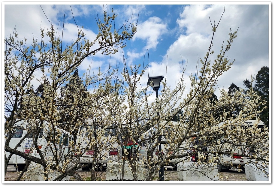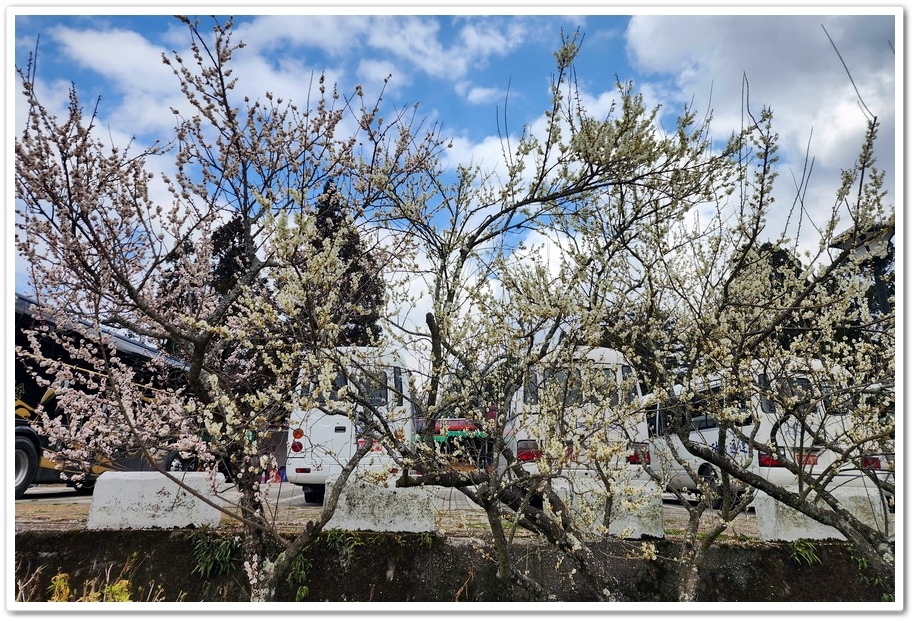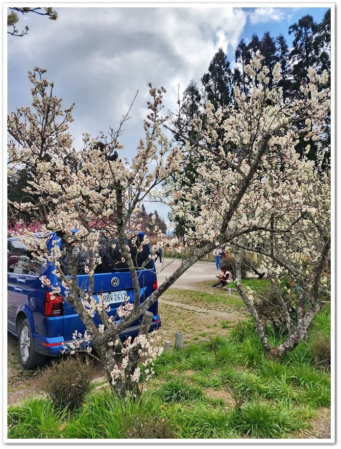 當我們在停車場吃完便當時,看到許多從台北來的國光客運、台灣好行、雄獅旅遊等大巴遊覽車,從車上下來的乘客,耐不住長途彎曲的山路,一個個接著下車嘔吐,ㄝ!我們才剛吃飽飯而已ㄝ!害我們趕快逃離現場拍花去,不然可能也要換我們肚子不舒服了!