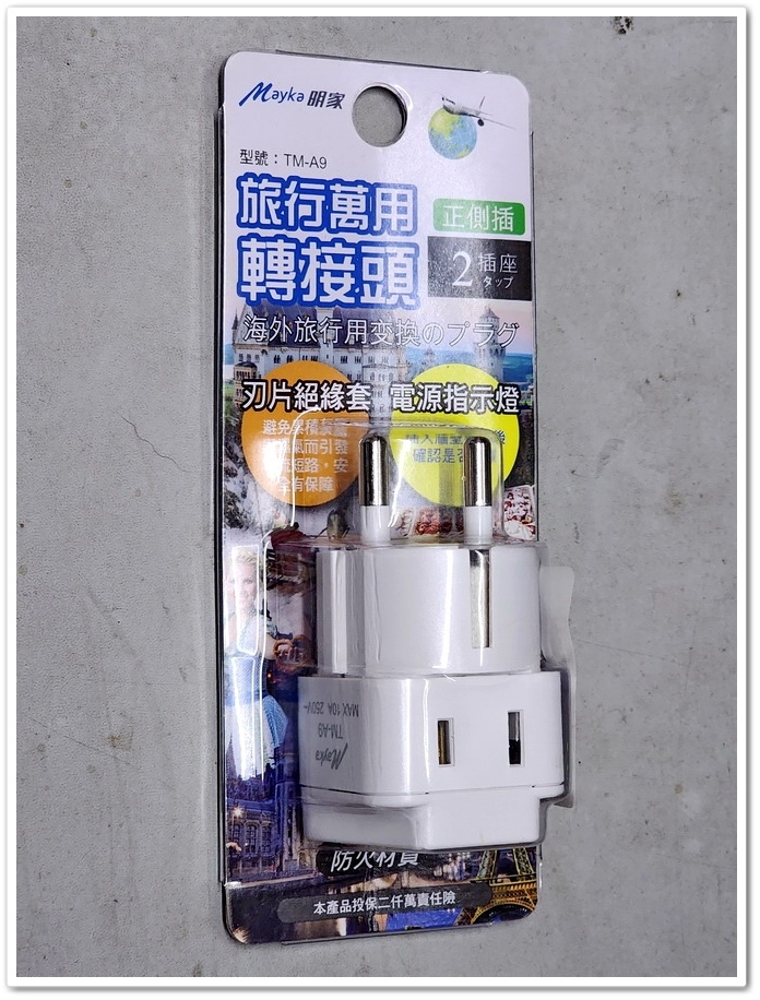 但現在手機、相機充電頭都已經自帶變壓器,所以只要帶轉接頭即可,如果飯店牆壁插座使用『萬用插座』,連轉接頭也不用帶,但因不知我們住的飯店是否使用『萬用插座』,所以還是要自帶轉接頭比較保險,而我的『國外旅行用電壓變換組』有兩種2支腳的插頭,一粗一細,不知道要用哪一個?所以兩個插頭都帶上!