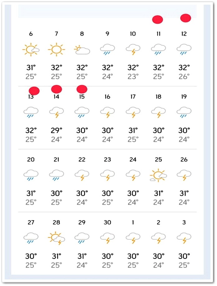 ▲ 而旅遊最重要的是拍照天氣,經查4/11日~4/15都是下雨天或爆雷,完了!完了!這該怎麼辦,但好友依他在『雅加達』工作20年的經驗說,印尼每年4月~9月為旱季,10月~次年3月為雨季,而且下雨只有10分鐘就沒了!我們在印尼5天也印證了這種說法,剛剛還是豔陽天,雨說下就下,而且一轉頭雨就沒了!好神奇喔!