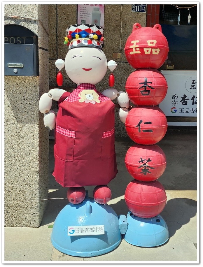 難道這家『玉品杏仁茶』有什麼特別之處嗎?可惜我不喜歡杏仁茶的味道,所以沒有買,也不知道其味道如何?來到澎湖南寮村這個嫻靜聚落,來杯杏仁茶涼飲,逛著還能保留著田園、咾咕石厝的聚落,走趟南寮人文遺跡慢遊,感受農村與熱情的村民情意!
