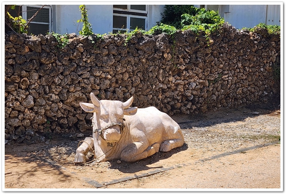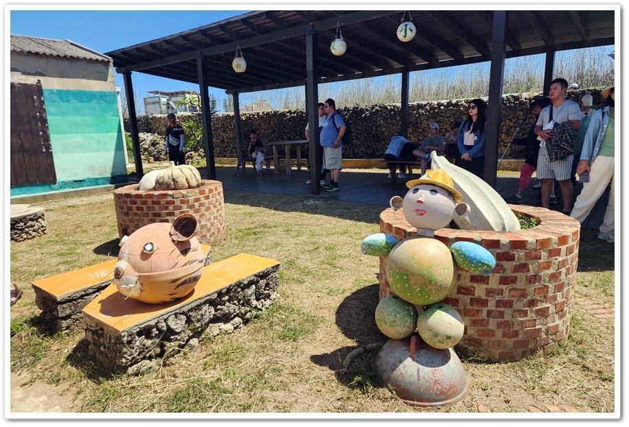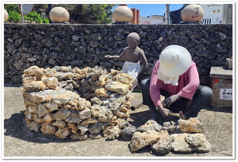 ▲ 上圖是假人!起初我看到的時候以為是真的人,能讓我以為是真的人,確實也不簡單!而這位婦人正在敲打『咾咕石』以方便建屋,『咾咕石』屬於珊瑚礁石灰岩,早期居民就地取材,建築多用『咾咕石』堆砌,別看他這樣,可多的是優點!冬暖夏涼、不會風化,是最大的特點!