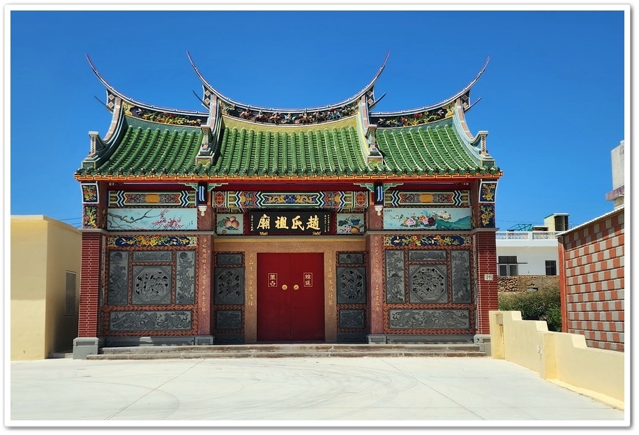 ▲ 『趙氏祖廟』始建年代不知何時,日治昭和12年(1937)重建,民國67年(1978)新建,至民國108年(2019)尚未改建。趙氏為南寮較早遷徙定居的住民,現今仍有祭祖的家族活動。正堂奉祀趙氏南寮開澎祖唐趙氏先祖禧祖34裔孫『趙子憲』祖牌。澎島潭邊、奎璧港、緝馬灣、水垵四社趙氏,系出同源,皆是金門浦邊趙氏開浯始祖『趙孝成』裔孫