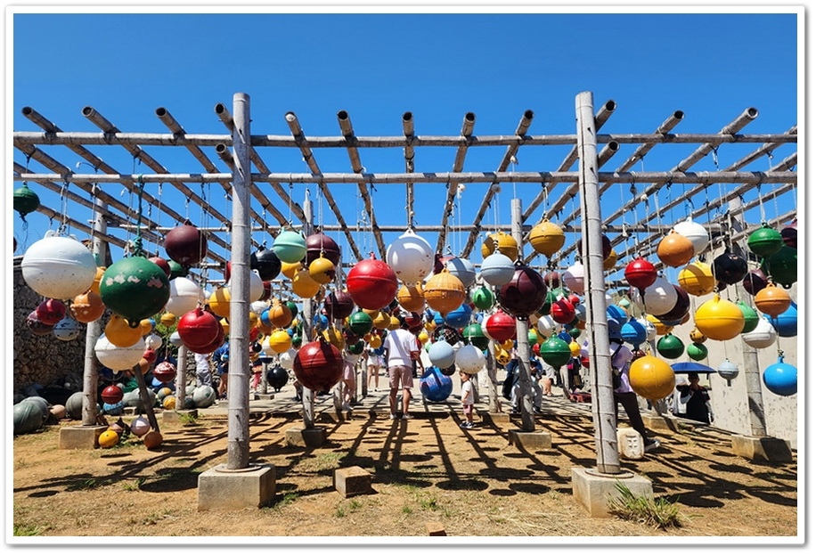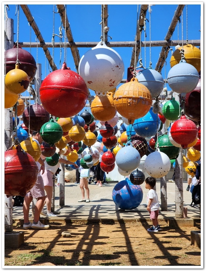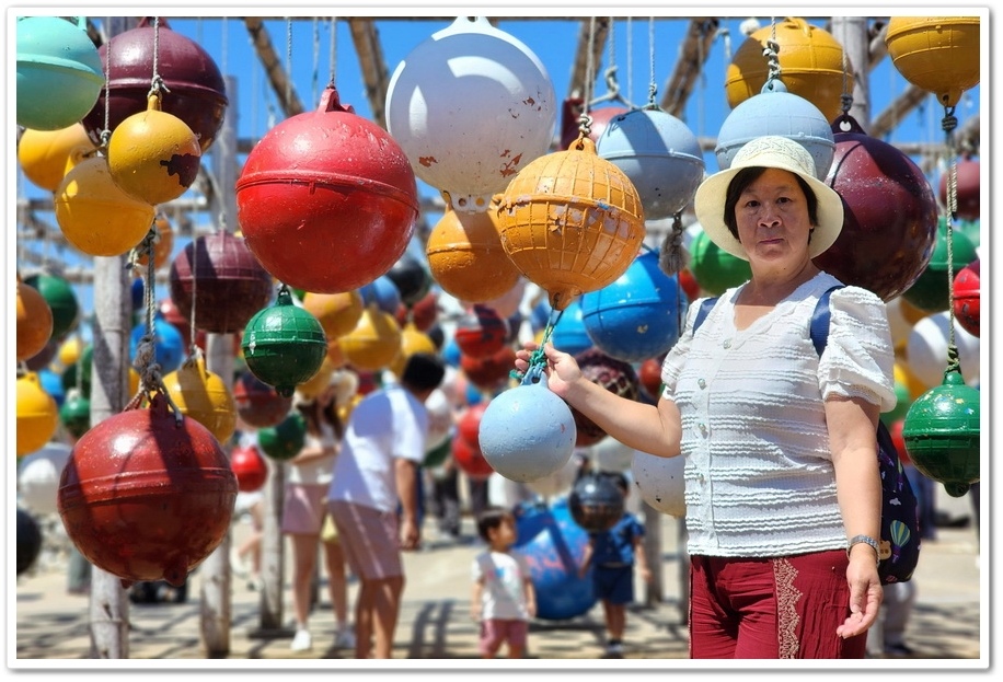 大量從中國飄過來的浮球廢棄物在藝術家巧手裝飾下,成為『南寮社區』中最吸引人注目的裝飾品,上百顆大大小小色彩鮮艷的浮球,營造出奇特的空間感,非常適合拍照!
