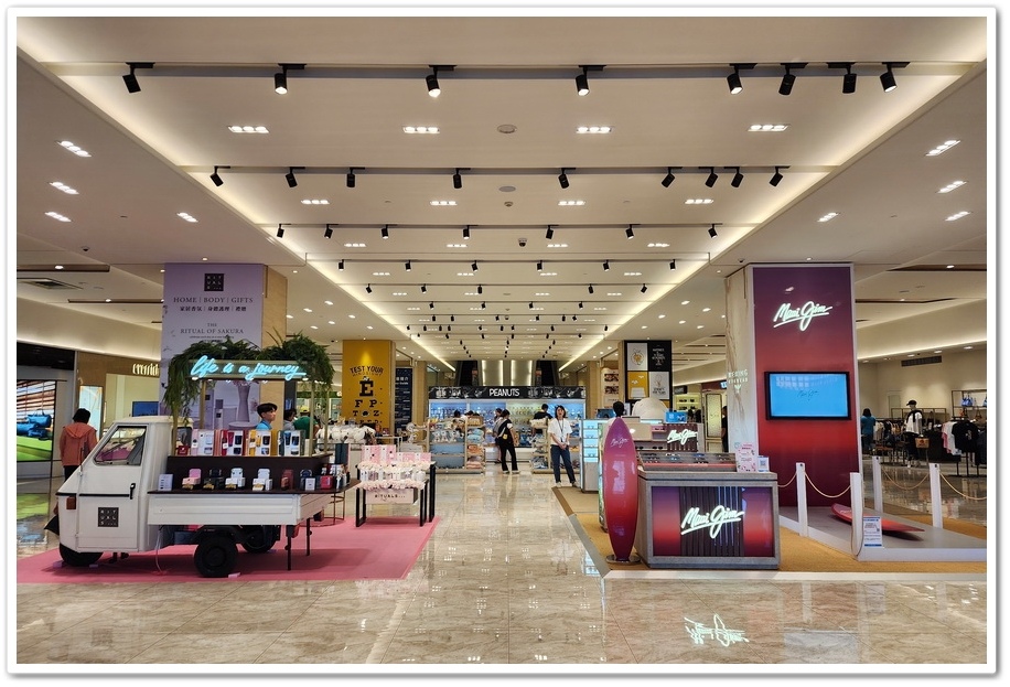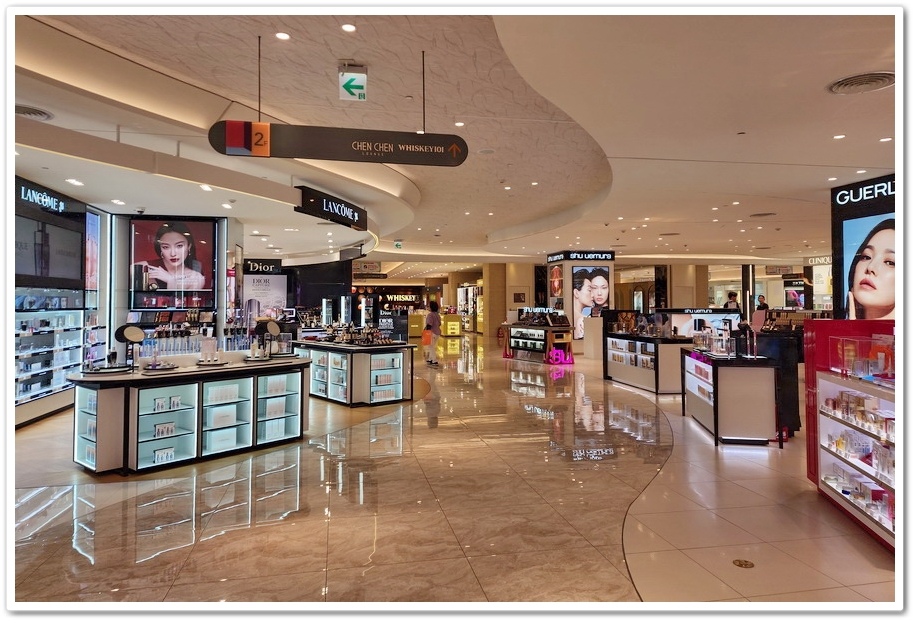 從大門進入可感受到『澎坊Pier3 三號港』寬敞的大空間,氣派的氛圍,非常好逛。大多是免稅商品採『預購』概念,現場購買結帳後,必須到機場取貨,有些櫃位若標示『完稅商品』,則可以結帳後帶走,完稅商品都比台灣本島百貨公司價格便宜,愛購物的旅人可好好消費!