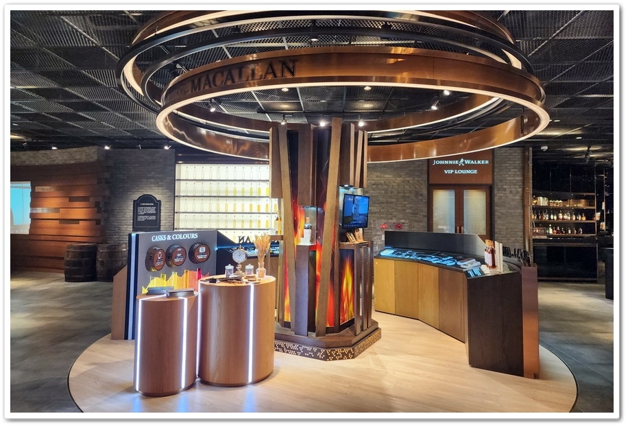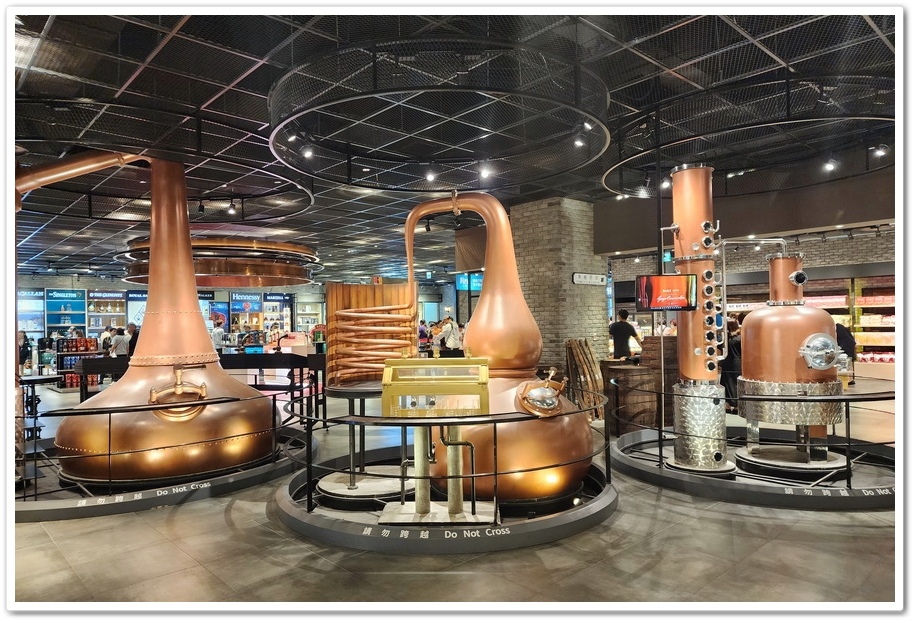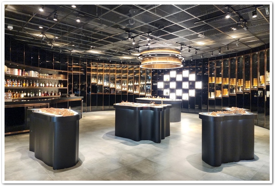 『Whiskey 101體驗館』打造超過3米5高的蒸餾器及各項威士忌製程所使用的器具,體驗威士忌如何從一顆大麥的麥芽,經過發芽、磨碎、發酵、蒸餾、陳年淬煉出珍貴的生命之水。整個bling bling玫瑰金的儲酒槽,非常壯觀,很有視覺感,可以在此拍照唷!
