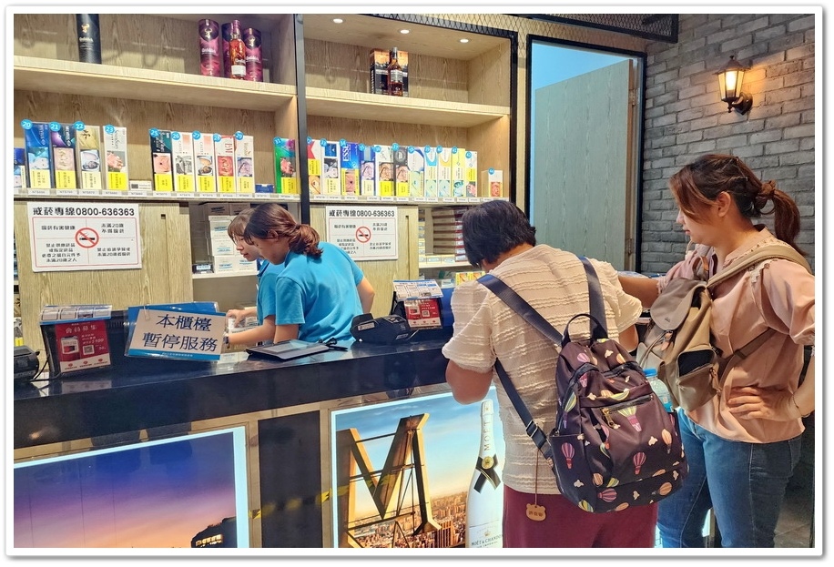 ▲ 因為我們不抽菸也不喝酒,所以我們兩個都是借人頭給導遊購買免稅菸酒,一人限購一條煙,以店裡免稅菸最大宗的七星菸來說,一條免稅菸價格是790元,而坊間便利商店一條七星菸則賣1250元,價差真的很高!只是香菸都已經這麼貴了,為何還是有那麼多人抽菸?然後抽菸對身體健康又不好!