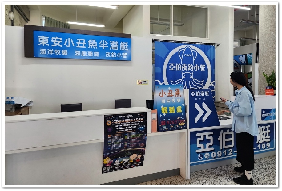 ▲ 東安小丑魚半潛艇櫃檯。澎湖共有4個碼頭,提供『南海』與『北海』跳島旅行。