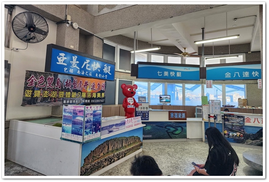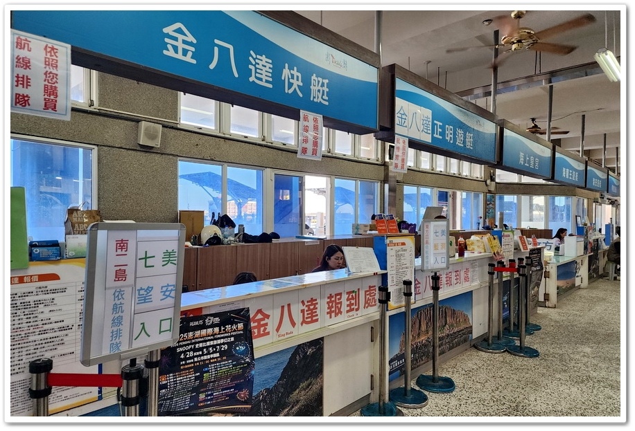 ▲ 海龍王快艇櫃檯。我們乘坐的船隻是『滿天星海上明珠2號』,屬於『金八達快艇』。金八達快艇(海上明珠國際開發股份有限公司)為『滿天星航運股份有限公司』品牌旗下的在地船隻公司,專營『澎湖本島←→澎湖離島』間的海上交通載客服務,航線範圍主要含括澎湖『南海』以及澎湖『南方四島』,提供夏季固定航班和包船服務,是旅人們遨遊澎湖海上公路的第一選擇