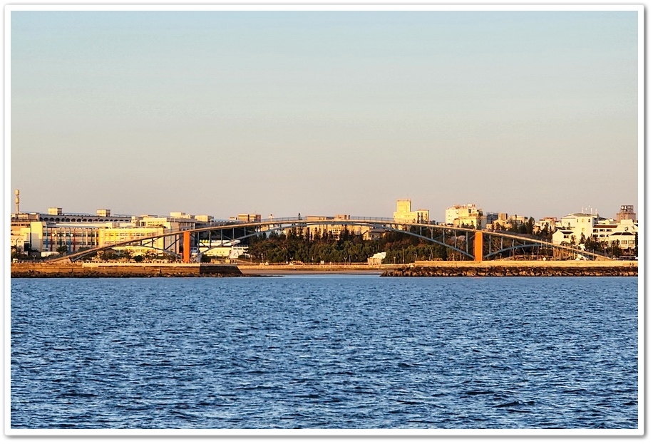 ▲ 『西瀛虹橋』位於澎湖縣馬公市的『觀音亭海濱公園』內,縣府耗資千萬在『觀音亭』外海堤搭建,於西元2004年完成,是澎湖地區第一座鋼拱橋。長200公尺、橋面淨寬4.6公尺、最高處橋底距海平面約15公尺,撘配紅、橙、黃、綠、藍、靛、紫等七彩霓紅燈的照明設備,夜間照明色彩正是彩虹的原子光譜,加上『觀音亭』向來有西瀛勝境的美名,於是拱橋命名之!同時『西瀛虹橋』也是每年『澎湖花火節』施放煙火的地方!