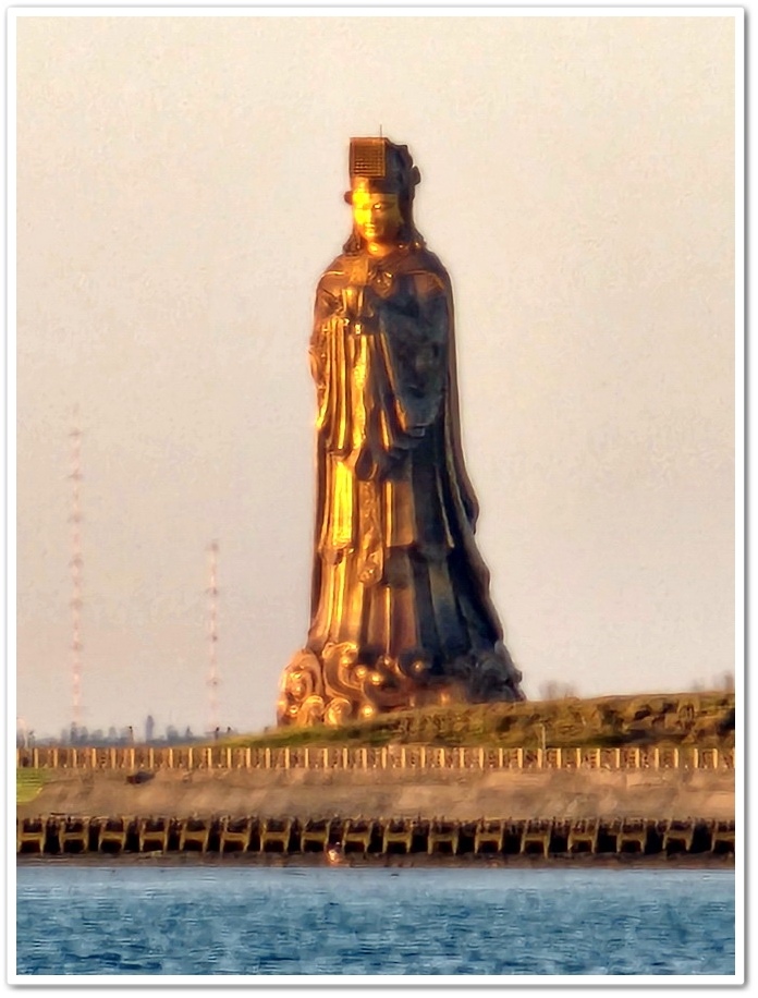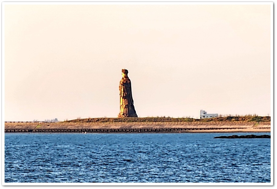 ▲ 全台最高媽祖銅像在澎湖。澎湖縣馬公市有一座高達48公尺的『重光媽祖銅像』,2022年啟用成為地標景點。『重光媽祖銅像』包含基座在內則達66公尺,大約22層樓高,位置就坐落在馬公市的西北角,而旁邊就是重光海堤,平常就適合居民散步,由於號稱全台最高媽祖銅像,2022年10月20日正式點燈落成啟用後,吸引不少遊客前往拍照!