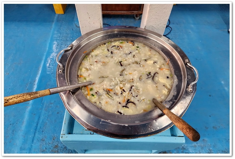 ▲ 如果烤蚵BBQ還吃不飽的話,商家還準備了一鍋海鮮粥,讓遊客可以盡情的吃到飽,海鮮粥裡面有小魚乾、小卷、木耳、高麗菜、紅蘿蔔等,用料紮實,用魚湯熬煮的海鮮粥有滿滿的海味,只是我吃不多!所以像這種容易飽的海鮮粥我就沒有吃了!但我老婆竟然吃了兩碗,直到散場這一鍋海鮮粥也被大家吃完了!
