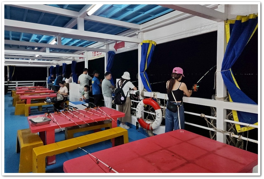 海洋牧場行程活動時間約2-2.5小時,夜釣小管行程活動時間約2小時(包含搭船來回時間)