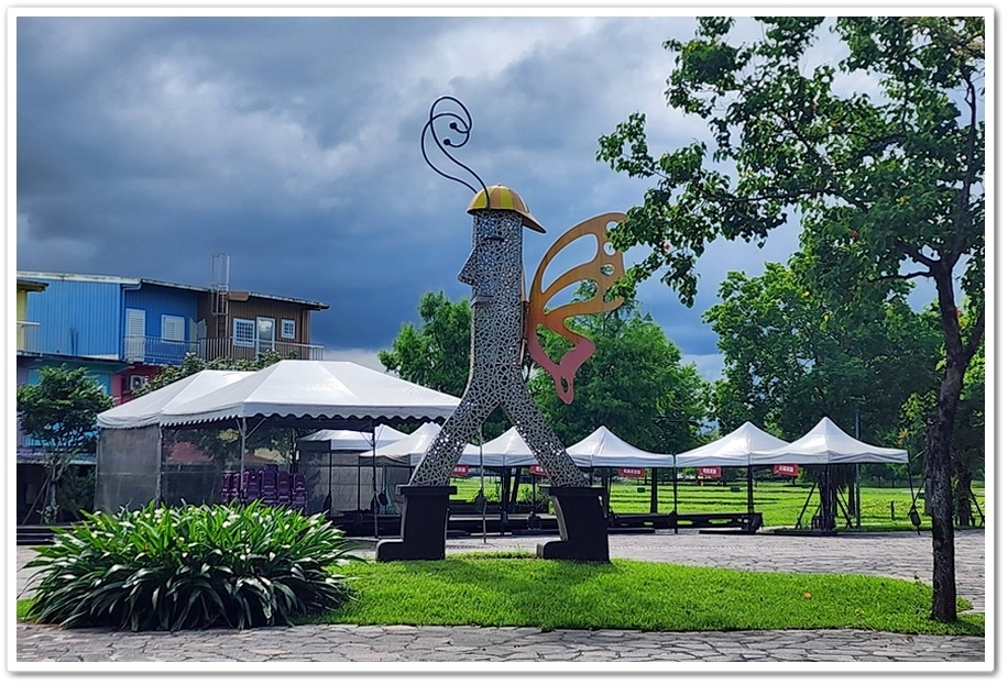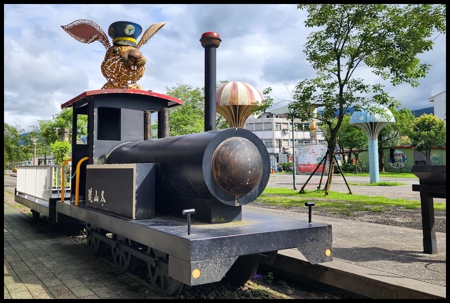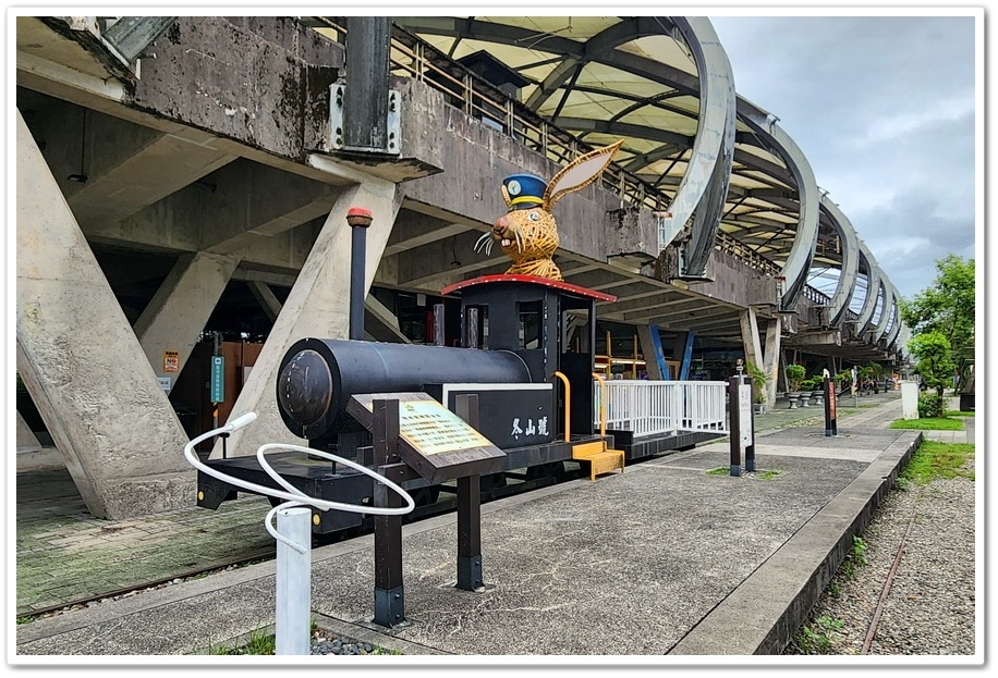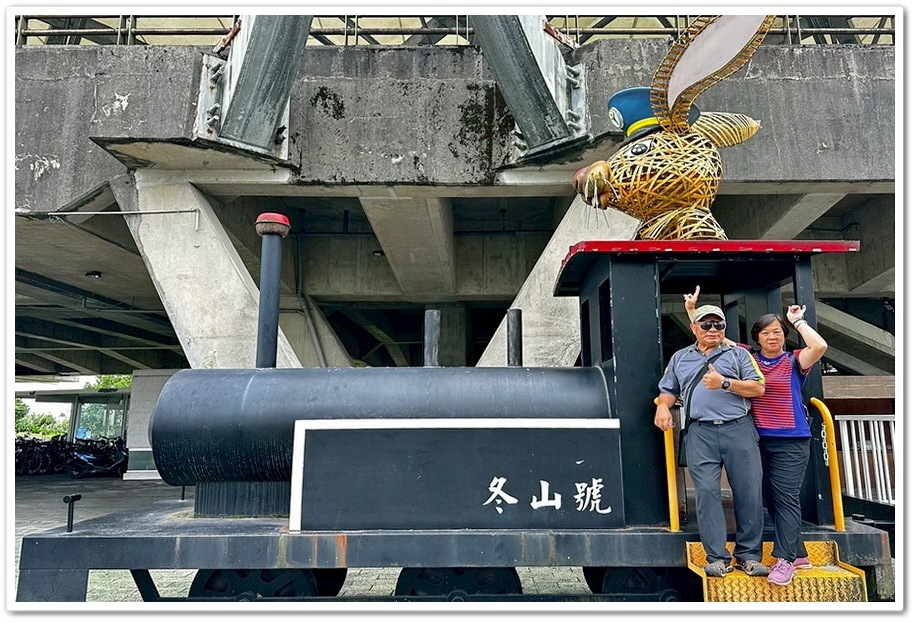 但在前往『冬山河舊河道』之前,我們的遊覽車停在『冬山火車站』的站前廣場,所以就順路參觀『冬山火車站』,然後沿著『冬山火車站』高架橋底下走就到了『冬山河舊河道』的乘船處,兩處距離僅350公尺而已!